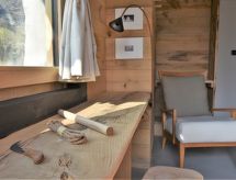 La dutxa és vigoritzant i hi ha una dutxa. Aquí on es permeten els gossos i els clients de benvinguda estan bé. Apte per a la graella. Hi ha un pou de foc. Hi ha un aparcament.- comoditats