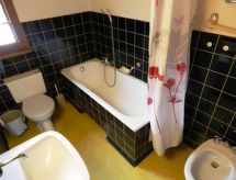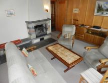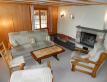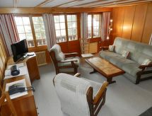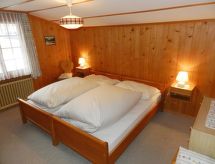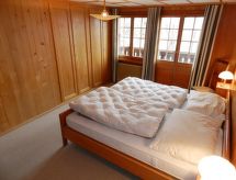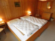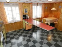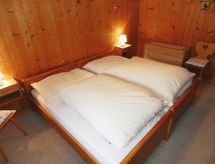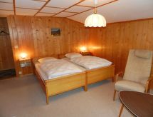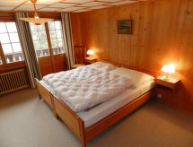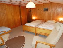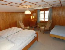 4 room apartment (90sqm) on the 1st floor of a three-family house built in 1962. Large sunbathing lawn. Furnished balcony. Furnished 4 room apartment with spacious separate eat-in open-plan kitchen (among other things furnished with fondue- and raclette-set). Living room with chimney, TV, radio and telephone. 3 bedrooms with each two pushed together single beds (2x90x190). 1 bathroom with bathtub, bidet and toilet. INCLUSIVE: electricity, heating, hot water, 1-2 uncovered parking spaces, WiFi, kitchen and bathroom towels, bed linen (initial supply), final cleaning and visitor's tax. EXCLUSIVE: Filter coffee. Garage CHF 6.00/day, telephone calls, firewood (only wood supply for first-time firing is available). ***Pets not allowed***. Té un balcó.- Característiques de l'allotjament