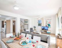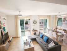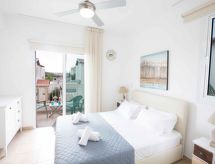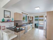 This beautifully kept 3 bedroom villa is spacious both inside and outside and furnished to a very high standard. Located in the Pernera area of Protaras, it is within 10 minutes walk of both Kalamies Beach and the resort centre.Inside, the villa has a very modern yet comfortable design. The living area has leather sofas, a widescreen TV with a Full UK satellite and dining table seating 6 persons. The large open plan kitchen is fully equipped with modern appliances. There is also a W/C on this floor.Upstairs, the master bedroom features a double bed and en-suite shower room. There is also access to a veranda. There are another 2 bedrooms, both with single beds .Outside the private garden has a 6 x 3 metre pool from where you can also enjoy the sea views. Sun-loungers and an umbrella are provided, along with a patio table and chairs. A built-in BBQ and sink area provide the perfect setting for outside dining and entertaining during the long summer evenings.Satellite TV and free WIFI are available and the villa has full air-conditioning.Overall this is a great villa option for families and groups of friends, looking for a luxury property within easy reach of the beach and resort centre. Bedroom 1: 1 Double Bed with en-suite bathroom / Bedroom 2: 2 Single Beds / Bedroom 3: 2 Single Beds. Per mantenir-lo fresc a l'estiu, aquesta casa de vacances disposa d'aire condicionat. Disposa d'assecadora. Hi ha un forn disponible.- Característiques de l'allotjament