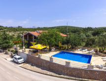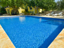 Hi ha una banyera disponible. L'habitatge està completament tancat. Amb jacuzzi privat. Aprofita la banyera d'hidromassatge. El sistema d'aire condicionat garanteix una bona temperatura ambient. Perquè el factor sensació de sentit juga un paper important i és important per a nosaltres. La casa també està equipada amb una terrassa. Hi ha una piscina privada.- comoditats