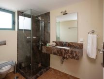 "Ahlis", 2-værelse-bungalow 43 m2. Komfortabelt og pæn indrettet: åben stue/soveværelse med 1 sovesofa, 1 klapseng og TV (fladskærms TV). Udgang til terrasse. 1 åbent dobbeltværelse med 1 dobbeltseng. Lille, åbent køkken (3 kogeplader, miniovn, elektrisk kaffemaskine). Brus/WC. Træ-opvarming, klimaanlæg. Lille terrasse overdækket. Flotte udsigt over havet og landskabet. Til benyttelse: internet (trådløs LAN [WLAN], gratis). Bemærk venligst: ikke-ryger hus. 1249Κ91000250400 Vi inviterer dig gerne til morgenmad hver dag.- Faciliteter