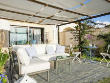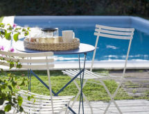 4-værelse-hus 90 m2 på 2 etager, i stueetagen. Komfortabelt og smagfuld indrettet: stor stue/spisestue med TV. Udgang til havesideplads. 1 dobbeltværelse. 1 mindre værelse med 2 senge. Udgang til have. Kogeniche (4 kogeplader, ovn, opvaskemaskine, fryser). Brus/bidet/WC. Overetage: 1 skrå dobbeltværelse med klimaanlæg. Brus/bidet/WC. Havesiddeplads. Havemøbler. Til benyttelse: vaskemaskine, strygejern myggenet barneseng, hårtørrer. Internet (trådløs LAN [WLAN], gratis). Velegnet for familier. 1 husdyr/hund tilladt. Spontane ideer opstår ofte under brusebadet. Måske bliver hendes nye roman eller sang skabt i løbet af disse ferier! Anyway, et bad er til rådighed. To-benede og firbenede venner på ferie er her mulig, fordi alle er velkommen her. Kæledyr er tilladt. Med indhegnet grund. Klimaanlægget sikrer en god stuetemperatur. Fordi den følsomme faktor spiller en vigtig rolle og er vigtig for os. En barneseng er tilgængelig. Det har en privat pool.- Faciliteter