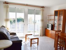 Aldea Park: Flerfamiliehus "Aldea Park". I byen, 400 m fra bymidten af Sant Carles de la Rapita, 300 m fra havet, 300 m fra stranden. Til medbenyttelse: stor have, pool (12 x 8 m, 80 - 200 cm dyb, Sæsonbestemt tilgængelighed: 01.Maj. - 31.Okt. poolen åbningstider: 10:00-21:00). Udendørs brus, Underholdning af poolen af ejeren/gartneren, offentlige parkeringspladser på vejen. Supermarked 1 km, restaurant 200 m, bar 100 m, sandstrand 400 m. Lystbådhavn 1 km, sejladsskole 1 km, sportcentrum 1 km. Nærliggende attraktioner: Parque Natural del Delta de l'Ebre 20 km, Peñiscola 40 km, Vinaroz 20 km, Port Aventura Salou 80 km. Vandrestier La Foradada Sant Carlos de la Rapita 6 km. Bemærk venligst: bil anbefales. Unge grupper kun på forespørgsel.Interior