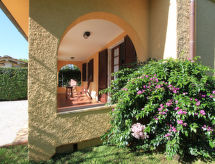 "Alessandro", 4-værelse-villa 120 m2 på 2 etager. Komfortabelt og pæn indrettet: stue/spisestue med sat-TV (fladskærms TV), DVD. Udgang til veranda. 1 værelse med 2 senge. Køkken (4 kogeplader, ovn, opvaskemaskine, mikroovn, fryser) med spisebord. Udgang til veranda. 2 brus/bidet/WC. Overetage: 1 dobbeltværelse med TV og klimaanlæg. Udgang til altan. 1 dobbeltværelse med klimaanlæg. Bad/bidet/WC, boblebad. Gas-opvarming (ekstra). Altan, terrasse, havesiddeplads, have. Havemøbler. Udsigt over have. Til benyttelse: vaskemaskine, pengeskab, strygejern hårtørrer. Internet (trådløs LAN [WLAN], gratis). 1 husdyr/hund tilladt. Den storslåede have lover uforglemmelige ferier. For jeres velvære kan du nyde boblebadet i feriesæsonen. Det har en veranda. Find ud af det eksisterende tv-apparat. Uanset om lokale nyheder eller internationale nyheder, med fjernsynet, er du altid velinformeret. En dvd-afspiller er tilgængelig.- Karakteristika for boligen