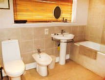 6-værelse-rækkehus på 3 etager. Komfortabelt indrettet: stor stue med TV, video, radio og cd. Åben spisestue. Køkken (ovn, opvaskemaskine, mikroovn, grill). Særskilt toilet. Overetage: 1 børneværelse med 1 sovesofa. 2 værelse, alle værelser med 1 dobbeltseng. Bad/brus/WC. Gas-opvarming. Tagetage: 1 skrå værelse med 1 dobbeltseng, brus/WC og TV. Til benyttelse: internet (trådløs LAN [WLAN], gratis). Der er en veranda.- Faciliteter