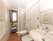 Hyggeligt, komfortabelt bondegård "Il Salicchio", renoveret i 2021, omgivet af græsmarker og marker. 5 lejligheder i bygningen. 2.5 km fra bymidten af Pian d´Alma, 8 km fra centrum af Punta Ala, 13 km fra bymidten af Castiglione della Pescaia, rolig, solrige beliggenhed, 2.5 km fra havet, i det grønne. Til medbenyttelse: have (ikke hegnet ind) med græsplæne og blomster. Grill. I anlægget: vaskemaskine (ekstra). Parkeringsplads på grunden. Indkøbsforretning 7 km, supermarked 8 km, restaurant 2.2 km, bar 2.2 km, cykeludlejning 7 km, togstation "Follonica" 14 km, sandstrand "Casetta Civinini" 2.4 km. Lystbådhavn 9 km, golfbane (18 hul) 8 km, surfskole 9 km, sejladsskole 4 km, tennis 6 km, minigolf 6 km, ridehal 6.5 km, vandrestier fra huset 200 m, legeplads 3 km. Nærliggende attraktioner: Cala Violina 4.6 km, Follonica 12 km, Riserva Naturale Diaccia Botrona 16 km. Bemærk venligst: babyudstyr på forespørgsel (inkl.). Spil golf! Med et ekspressivt landskabsgrundlag i baggrunden vil din golfoplevelse blive beriget med kun en facet. Golfbaner er tilgængelige.Interior