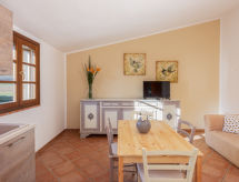 "Alma", 3-værelse-hus 65 m2, i stueetagen. Fuldstændig renoveret i år 2021, komfortabelt og hyggeligt indrettet: stue/spisestue med spisebord og fladskærms TV. Udgang til terrasse. 2 dobbeltværelse. Åbent køkken (ovn, opvaskemaskine, 4 gasblus, kedel, fryser, elektrisk kaffemaskine). Udgang til terrasse. Brus/bidet/WC. Gas-opvarming, klimaanlæg, varmluftsopvarming. Terrasse overdækket, have. Havemøbler, liggestole. Til benyttelse: vaskemaskine (ekstra). Myggenet højstol, barneseng til 2 år. Internet (trådløs LAN [WLAN], ekstra). Bemærk venligst: ikke-ryger lejlighed. 1 husdyr/hund tilladt. Privat indgang. Velegnet til grillning.- Faciliteter