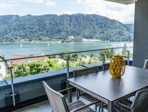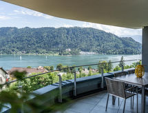 "Landskron medium", 3-værelse-lejlighed 80 m2. Lys, moderne og smagfuld indrettet: stue/spisestue med spisebord, sat-TV og fladskærms TV. 1 dobbeltværelse med 1 x 2 køjesenge. 1 dobbeltværelse. Åbent køkken (ovn, opvaskemaskine, 4 keramiske kogeplader, Brødrister, kedel, mikroovn, fryser). Brus/WC, særskilt toilet. Altan. Altanmøbler. Meget flotte udsigt over søen og landskabet. Til benyttelse: pengeskab, hårtørrer. Internet (trådløs LAN [WLAN], gratis). Bemærk venligst: ikke-ryger lejlighed. Brandalarm. Ejendommen hører til en type ejendom eller lejlighed. Der er en parkeringsplads. Find ud af det eksisterende tv-apparat. Uanset om lokale nyheder eller internationale nyheder, med fjernsynet, er du altid velinformeret.- Faciliteter