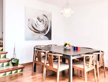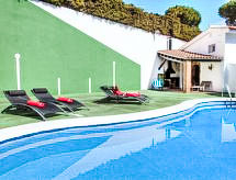 Santa Maria de Llorell 3 km fra center Tossa de Mar: Smuk, hyggeligt, komfortabelt villa "Amapola", omgivet af træer. Rolig, solrige beliggenhed, område med lidt traffik, 850 m fra havet, 850 m fra stranden, retning syd. Til alene benyttelse: smuk, velplejet have i forskellige niveauer med græsplane, pool kantet, beskyttet (9 x 5 m, Sæsonbestemt tilgængelighed: 05.Apr. - 10.Nov.). Rutschebane, udendørs brus, terrasse, lysthus, pergola, havemøbler, grill. I huset: vaskemaskine. Parkeringsplads på grunden, offentlige parkeringspladser på vejen. Indkøbsforretning 3 km, supermarked 2.5 km, restaurant 1.5 km, togstation "Blanes" 15 km, sandstrand "Santa Maria de Llorell" 850 m. Nærliggende attraktioner: Tossa de Mar Castle 3 km, Waterworld 10 km, Marineland 15 km, Jardin Botanico Pinya de Rosa 11 km, Jardin Botanico Marimurtra 12 km. Bemærk venligst: bil anbefales. Velegnet for familier. Ejeren accepterer ingen grupper. Ejeren accepterer ikke nogen ungdomsgrupper. Overvåget residence. Ejer bor på sammen grund. Fredfyldt og roligt område. Stilhed og gode manerer er forventet. Regionen er et populært rejsemål for en sjov sejleoplevelse. Leder du efter den perfekte bølge til surfing? Når den er fundet, skaber den en ubeskrivelig følelse af lykke.Interior