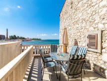 3-familiehus "Antonella & Napoletano", på 3 etager. I bymidten fra Umag, 8 km fra centrum af Novigrad, 20 m fra havet. Til medbenyttelse: grund. Terrasse, havemøbler. I huset: vaskemaskine (til medbenyttelse, ekstra). Offentlige parkeringspladser 100 m ekstra. Indkøbsforretning 50 m, supermarked 200 m, 5 m. Marina 300 m. Ejeren accepterer ikke nogen ungdomsgrupper. For alle sejlere, der kommer til Umag at sejle, vil de elske det.Interior