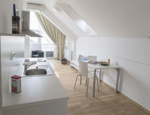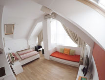 "Apartment Bine", 1-værelse-et-værelses lejlighed 41 m2 i 2. etage. Enkelt indrettet: stue/soveværelse med 1 dobbeltseng (1 x 180 cm, længde 200 cm), kabel-TV (fladskærms TV). Åbent køkken (opvaskemaskine, 2 keramiske kogeplader, mikroovn) med spisebord. Brus/WC. Klimaanlæg. Til benyttelse: vaskemaskine. Internet (trådløs LAN [WLAN]). Ferieejendommen har en passager elevator. Den undertrykkende varme kan lægge en tung belastning på krop og sind. Derfor er lokalerne udstyret med aircondition. Der er en opvaskemaskine til rådighed. En overdækket parkeringsplads er tilgængelig. Huset er også udstyret med et trådløst lokalnetværk (WLAN).- Faciliteter