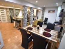 Komfortabelt hus "Apartments V+K", fritstående. 4 lejligheder i ejendommen. Uden for byen, rolig, høj beliggenhed, i en blind vej, i det grønne. Til medbenyttelse: grund, park. Legeplads. I anlægget: bordfodbold, centralvarme, alarmanlæg. Opbevaringsrum muligt. Parkeringsplads ved huset. Indkøbsforretning 500 m, fødevarebutik 200 m, supermarked 6 km, restaurant 500 m, busstoppested 800 m, togstation 1.5 km, pool 18 km. Bjergbane 500 m, skilift 10 km. Nærliggende attraktioner: Važecká jaskyňa 9 km, Aqua City Poprad 19 km, Gerlach 25 km. Kendte skiområder nås nemt: Štrbské pleso 9 km. Kendte søer nås nemt: Štrbské pleso 9.5 km. Vandrestier Tatranský národní park (TANAP).Interior