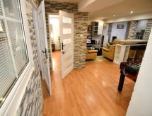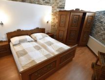 3-værelse-lejlighed 60 m2, nederste etage. Moderne og rustikt indrettet: stue med sat-TV. 1 værelse med 1 dobbeltseng. 1 værelse med 1 dobbeltseng. Kogeniche (4 kogeplader, ovn, mikroovn) med spisebord. Brus/WC. Flotte udsigt over bjergene. Til benyttelse: internet (trådløs LAN [WLAN], gratis). Bemærk venligst: privat indgang. Legepladsen, som er egnet til børn, er tilgængelig.- Faciliteter