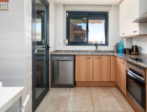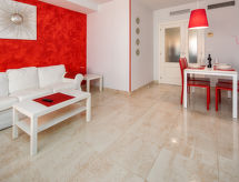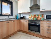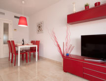 Smuk, hyggeligt flerfamiliehus "Aquamaris". I byen, 500 m fra bymidten af Dénia, rolig beliggenhed, 500 m fra havet, 500 m fra stranden. Til medbenyttelse: stor, smuk, velplejet have med græsplæne, pool (16 x 13 m, 80 - 210 cm dyb, Sæsonbestemt tilgængelighed: 01.Jan. - 31.Dec.). Formet pool. Udendørs brus, legeplads (rutschebane, gynge). I huset: elevator. Fælles garage. Supermarked 400 m, restaurant 500 m, bar 400 m, bageri 600 m, sandstrand "Playa Denia" 500 m. Lystbådhavn 1 km, surfskole, sejladsskole 500 m, tennis 400 m. Ejeren accepterer ikke nogen ungdomsgrupper. Et populært surfemål med forfriskende bølger. Surferne er glade for at være her. Aktive gæster kan spille tennis på banerne. Tag tennisracketen til et spil med tillid.Interior