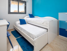 "Aquamaris", 3-værelse-lejlighed 80 m2. Rummelig og lys, komfortabelt og pæn indrettet: stue/spisestue med digital TV, klimaanlæg og varmluft opvarming. Udgang til terrasse. 1 værelse med 1 fransk seng (160 cm, længde 190 cm), bad/bidet/WC, digital TV og ventilator. 1 værelse med 1 udtræksseng (2 pers. 2 x 80 cm, længde 190 cm), ventilator. Køkken (ovn, opvaskemaskine, 4 keramiske kogeplader, Brødrister, mikroovn, fryser, elektrisk kaffemaskine). Brus/bidet/WC. Terrasse. Havemøbler. Til benyttelse: vaskemaskine, strygejern højstol, barneseng, hårtørrer. Internet (trådløs LAN [WLAN], gratis). Garage. Bemærk venligst: TV kun ES. R000000001 I haven kan du nyde ferien til fulde. Der er en komfur.- Aktiviteter i nærheden