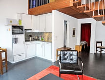 4-værelse-taglejlighed 95 m2 i 2. etage. Komfortabelt og smagfuld indrettet: stue/spisestue med sat-TV og stereoanlæg. Udgang til altan. 1 dobbeltværelse med 2 senge. Udgang til altan. Åbent køkken (ovn, opvaskemaskine, 4 keramiske kogeplader, elektrisk kaffemaskine, Kapsler til kaffemasin (Nespresso) ekstra). Bad/WC. Overetage: 1 skrå værelse med 2 senge. 1 skrå værelse med 1 dobbelt sovesofa. Stor altan, lille altan. Havemøbler. Herlige panoramaudsigt over bjergene og landskabet. Til benyttelse: internet (trådløs LAN [WLAN]). Garage nr. 10. Vores legeplads tilbyder masser af plads til boltre og lege. Der er balkon. Velegnet til grill. En overdækket parkeringsplads er tilgængelig. En tørretumbler er tilgængelig. Der er et bordtennisbord.- Karakteristika for boligen