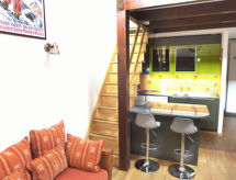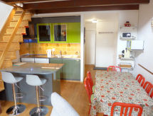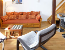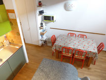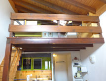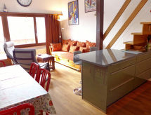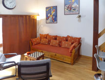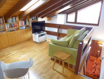 3-værelse-lejlighed 78 m2 på 2 etager i 3. etage. Delvis skråt, pæn indrettet: stue/spisestue med radio og cd. 1 værelse med 1 fransk seng (160 cm, længde 200 cm). Åbent køkken (ovn, opvaskemaskine, 4 keramiske kogeplader, Brødrister, kedel, mikroovn, elektrisk kaffemaskine, Kapsler til kaffemasin (DELONGHI) ekstra, fonduesæt (ost )). Bad/WC. Overetage: (stejl trappe) lille salon med kabel-TV (fladskærms TV), DVD. 1 værelse med 2 senge (90 cm, længde 190 cm). Særskilt toilet. Altan 8 m2, vest vendt. Altanmøbler. Flotte udsigt over bjergene og dalen. Til benyttelse: højstol, barneseng til 2 år, hårtørrer. Internet (trådløs LAN [WLAN], gratis). Garage nr. 20, højde 190 cm, bredde 230 cm. Bemærk venligst: ikke-ryger lejlighed. Residence. Bad i huset. Objekt med elevator. En sauna er til rådighed. En pool er tilgængelig. Der er en indendørs pool. En opvarmet pool er tilgængelig. Det har en dvd-afspiller.- Karakteristika for boligen