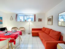 2-værelse-lejlighed 40 m2, nederste etage. Emner egnet for 2 voksne + 2 børn. Komfortabelt og pæn indrettet: stue/spisestue med 1 dobbelt sovesofa (140 cm, længde 190 cm), TV (fladskærms TV), stereoanlæg. 1 børneværelse med 1 x 2 køjesenge (90 cm, længde 190 cm). Lille, åbent køkken (4 kogeplader, opvaskemaskine, Brødrister, kedel, elektrisk kaffemaskine, kombi-ovn). Brus, særskilt toilet. El-opvarming. Til benyttelse: vaskemaskine, strygejern hårtørrer. Internet (trådløs LAN [WLAN], gratis). Bemærk venligst: ikke-ryger lejlighed. Brandalarm. 6448300023847 Der er en barneseng.- Faciliteter