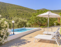 "Azzurro", 3-værelse-villa 90 m2. Rummelig og lys, komfortabelt og pæn indrettet: åben stue/soveværelse med 2 sovesofaer og sat-TV (fladskærms TV). Udgang til terrasse, til pool. 1 dobbeltværelse med 1 dobbeltseng. Udgang til terrasse. 1 dobbeltværelse med 2 senge. Udgang til terrasse. Åbent køkken (ovn, 4 keramiske kogeplader, elektrisk kaffemaskine, Kapsler til kaffemasin (Nespresso) ekstra). Brus/WC. Klimaanlæg. Stor terrasse delvis overdækket. Grill. Flotte udsigt over havet og landskabet. Til benyttelse: vaskemaskine, strygejern hårtørrer. Internet (trådløs LAN [WLAN], gratis). Bemærk venligst: ikke-ryger hus. 0311K12K20311400 Der er et brusebad, så tag dig tid til lidt afslapning og forfriskning. Overrasket af en storslået udsigt over havet. Huset er også udstyret med en terrasse. Velegnet til grillning. Der er en privat pool. Ved rengøring.- Faciliteter