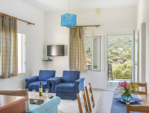 Smuk, komfortabelt villa "Azzurro", fritstående, bygget i 2008, omgivet af træer. I bydelen Agia Paraskevi, 450 m fra havet, 450 m fra stranden. Til alene benyttelse: smuk have med blomster og træer, pool kantet (Sæsonbestemt tilgængelighed: 15.Apr. - 31.Okt.). Udendørs brus, grill. Skift af linned 2 gang ugentlig. Udskiftning af håndklæder 2 gang ugentlig. Rengøring af lejlighed 2 gang ugentlig. Parkeringsplads ved huset. Fødevarebutik 9 km, supermarked 9 km, restaurant 450 m, bageri 9 km, café 450 m, kiselstenstrand "Agia Paraskevi" 450 m, dykkercenter 18.2 km. Ridehal 6.4 km. Nærliggende attraktioner: Samos Wine Museum 11.4 km, Archaeological Museum of Samos 9.3 km, Natural History Museum of Aegean 22.2 km, Archaeological Museum of Pythagorion 20.7 km, Pythagoras Caves 60.3 km. Bemærk venligst: bil anbefales. Velegnet for familier, babyudstyr på forespørgsel (inkl.). Unge grupper kun på forespørgsel. Hvis du er på udkig efter denne jords lykke på bagsiden af hestene, er du på det rigtige sted her. Kør på de mange idylliske ridestier i lokale gårde.Interior