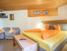"Bergwind", 4-værelse-lejlighed 100 m2, på øvre etage. Nederste etage: indgang. Overetage: 2 værelse, alle værelser med 1 sovesofa, 1 dobbeltseng og brus/WC. Udgang til altan. 1 værelse med 1 dobbeltseng og brus/WC. Udgang til altan med separate toilet. Køkken/alrum (4 kogeplader, ovn, opvaskemaskine, mikroovn, elektrisk kaffemaskine) med spisebord og sat-TV. Udgang til altan. Til benyttelse: internet (trådløs LAN [WLAN], gratis). 1 husdyr/hund tilladt. Kæledyr er tilladt. Lad din hund tage en sniff på de bedste dage i året. Der er balkon. Der er en parkeringsplads til rådighed.- Faciliteter