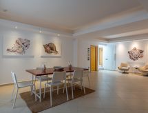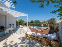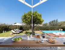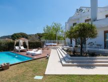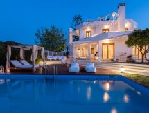 "Bianca", 4-værelse-villa 280 m2 på 3 etager. Rummelig og lys, komfortabelt og pæn indrettet: åben stue/spisestue med åben kamin, spisebord og sat-TV (fladskærms TV). Udgang til have, til pool. Åbent køkken (ovn, opvaskemaskine, 4 keramiske kogeplader, 2 gasblus, Brødrister, kedel, mikroovn, elektrisk kaffemaskine, kogeø). Særskilt toilet. Klimaanlæg. Nederste etage: (trappe uden gelænder) 1 stort dobbeltværelse med 1 dobbelt sovesofa, 1 dobbeltseng og sat-TV (fladskærms TV). Bad/brus/WC. Klimaanlæg. Overetage: (trappe uden gelænder) 2 dobbeltværelse, alle værelser med 1 dobbeltseng, bad/brus/WC og sat-TV (fladskærms TV). Udgang til altan. Klimaanlæg. 2 stor altan, stor terrasse. Grill. Flotte udsigt over svimmingpoolen og have. Til benyttelse: vaskemaskine, pengeskab, strygejern hårtørrer. Internet (trådløs LAN [WLAN], gratis). Bemærk venligst: ikke-ryger hus. 1240543 En tilhørende idyllisk have inviterer dig til at sidde i solen. En balkon er tilgængelig. Velegnet til grillning. Der er en barneseng. Der er en privat pool.- Karakteristika for boligen
