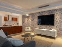 Moderne, smuk villa "Bianca", på 3 etager, fritstående. I bydelen Ialyssos, solrige beliggenhed, 450 m fra havet, 450 m fra stranden. Til alene benyttelse: smuk, velplejet have med blomster og træer, liggeplæne, pool kantet (25 m2, 150 cm dyb, Sæsonbestemt tilgængelighed: 01.Apr. - 30.Nov.). Udendørs brus, parkeringsplads (for 2 biler) ved huset. Fødevarebutik, supermarked 60 m, restaurant 1.5 km, bar 1.5 km, bageri 60 m, café 1.5 km, kiselstenstrand "Ialyssos" 450 m. Golfbane (18 hul) 16.5 km, ridehal 4 km. Nærliggende attraktioner: Valley of the Butterflies 20.8 km, Lindos Acropolis 46.5 km, Asklipio Castle 60.3 km, Palace of the Grand Master of Knights 9.5 km, Medieval City of Rhodes 8 km, Waterpark Rhodes 13.9 km. Bemærk venligst: bil anbefales. Velegnet for familier, babyudstyr på forespørgsel (inkl.). Unge grupper kun på forespørgsel. Hovedvej i nærheden. Bølgerne på dette sted beruser vores surfers hjerte. Surfing er en lidenskab.Interior