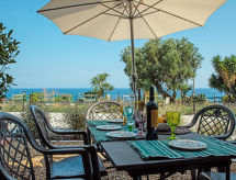 "Blue (SLR352)", 2-værelse-lejlighed 38 m2, i stueetagen, syd øst vendt. Lys, moderne indrettet: stue/soveværelse med 1 dobbelt sovesofa (140 cm), spisebord og sat-TV. Udgang til havesideplads. 1 værelse med 1 fransk seng (160 cm). Åbent køkken (ovn, 4 gasblus, Brødrister, kedel, fryser, elektrisk kaffemaskine). Brus/bidet/WC. Gas-opvarming. Havesiddeplads. Havemøbler, grill. Flotte udsigt over havet, have og bugt. Til benyttelse: vaskemaskine, højstol, barneseng. Internet (trådløs LAN [WLAN], gratis). Bemærk venligst: privat indgang. CITR: 008031-AGR-0015 Residence. Læn dig tilbage, ferien følelsen begynder i den tilhørende have. Udsigt over havet og beliggenheden er smuk. En veranda er tilgængelig. Velegnet til grill.- Karakteristika for boligen