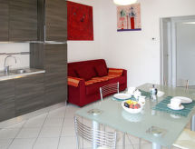 Lille, smuk residens "La Tuffatrice", på 2 etager, fritstående. 7 lejligheder i ejendommen. 1.5 km fra bymidten af San Lorenzo al Mare, 4 km fra centrum af Imperia - Porto Maurizio, 19 km fra bymidten af San Remo, solrige, høj beliggenhed, område med lidt traffik, 100 m fra havet, i en blind vej. Til medbenyttelse: stor, velplejet have 600 m2 med græsplæne og træer, liggeplæne. I anlægget: solterrasse. 100 m lang, tilkørsel til til huset. Parkeringsplads (for 5 biler) i 100 m på grunden. Supermarked 1.8 km, restaurant 1 km, bar 1 km, busstoppested 300 m, togstation "Imperia / Porto Maurizio" 5 km, sandstrand "San Lorenzo al Mare" 800 m, svømmehal 5 km. Marina 6 km. Bemærk venligst: Af- og pålæsning af bagage er mulig ved ferieboligen. Ejer bor i sammen hus.Interior
