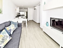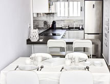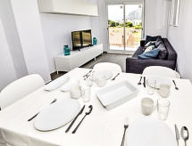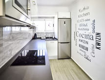 Les Deveses 4 km fra Els Poblets: Meget hyggeligt, meget komfortabelt flerfamiliehus "Bonamar". Ved bykanten, 10 km fra centrum af Dénia, 20 m fra havet, 20 m fra stranden. Parkeringsplads på grunden. Supermarked 1.5 km, indkøbscenter 450 m, restaurant 1.2 km, bar 1.2 km, sandstrand 20 m. Marina 10 km, surfskole, sejladsskole 450 m. Unge grupper kun på forespørgsel.Interior
