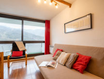 "Brelin Côte Brune 613", 2-værelse-lejlighed 39 m2 på 2 etager i 8. etage. Hensigtsmæssig og pæn indrettet: indgang med separate toilet. Stue/spisestue med 1 dobbelt sovesofa (140 cm, længde 200 cm), fladskærms TV. Udgang til altan. Kogeniche (2 kogeplader, ovn, opvaskemaskine, Brødrister, kedel, mikroovn, elektrisk kaffemaskine) med serveringslem. Nederste etage: 1 stort værelse med 1 seng (80 cm), 1 x 2 køjesenge (80 cm). Brus. Opvarming. Altan, syd vendt. Meget flotte udsigt over skipisterne. Til benyttelse: internet (trådløs LAN [WLAN], ekstra). Bemærk venligst: maksimum 1 husdyr/hund tilladt. Brandalarm. Dusj er forfriskende og et brusebad er til stede. Indkvartering med vedhæftet restaurant. En balkon er tilgængelig.- Karakteristika for boligen
