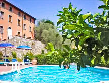 Bozzano 3 km fra Massarosa: Rustikt, historisk ferieanlæg, omgivet af græsmarker og marker. 500 m fra bymidten af Bozzano, rolig, solrige beliggenhed ved bakke, 11 km fra havet, 3 km fra søen, beliggende ved en landevej. Til medbenyttelse: have 1'000 m2, pool (12 x 5 m, 150 cm dyb, Sæsonbestemt tilgængelighed: 01.Maj. - 30.Sep.). Udendørs brus, bordtennis, terrasse, havemøbler, grill. I anlægget: adgang til internet, opvarme kun tilgængelig fra 01.11. til 15.04.. Skift af linned 1 gang ugentlig (yderlige ekstras). Rengøring af lejlighed muligt. Parkeringsplads ved huset. Fødevarebutik 500 m, supermarked 1 km, restaurant 1 km, bar 500 m, busstoppested 1 km, togstation "Bozzano" 1 km, sandstrand 10 km. Tennishal 2 km, ridehal 2 km, vandrestier fra huset 50 m. Nærliggende attraktioner: Firenze 80 km, Lucca 15 km, Pisa 20 km. Kendte søer nås nemt: Lago di Massaciuccoli 3 km. Bemærk venligst: bil anbefales. Vær ikke bekymret for at ride på en hest, hvis du aldrig har gjort det før. Ridning er en behagelig fornøjelse for hest og rytter.Interior