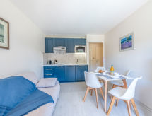 2-værelse-lejlighed 35 m2 i 1. etage. Renoveret i år 2021, pæn indrettet: stue/spisestue med TV (fladskærms TV), klimaanlæg. Udgang til altan. 1 værelse med 1 fransk seng (160 cm, længde 200 cm). Udgang til altan. Soveniche med 1 x 2 køjesenge (80 cm, længde 190 cm). Kogeniche (opvaskemaskine, 2 keramiske kogeplader, Brødrister, kedel, mikroovn, elektrisk kaffemaskine). Bad, særskilt toilet. Stor altan 12 m2, øst vendt. Altanmøbler. Udsigt over svimmingpoolen. Til benyttelse: strygejern hårtørrer. Internet (trådløs LAN [WLAN], ekstra). Parkeringsplads. Bemærk venligst: ikke-ryger hus. Brandalarm. 830650003518C Residence. Bad i huset. Objektet har elevator. Vores have venter på dig for en dukkert i afslapningen. Klimaanlægget sikrer en god stuetemperatur. Fordi den følsomme faktor spiller en vigtig rolle og er vigtig for os.- Karakteristika for boligen
