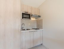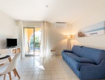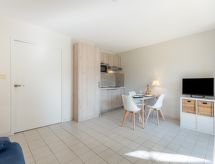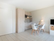 1-værelse-et-værelses lejlighed 25 m2 i 2. etage. Renoveret i år 2021, pæn indrettet: indgang med 1 seng (80 cm, længde 190 cm). Stue/spisestue med 1 dobbelt sovesofa (140 cm, længde 190 cm), TV (fladskærms TV). Udgang til altan. Kogeniche (2 keramiske kogeplader, Brødrister, kedel, mikroovn, elektrisk kaffemaskine, Kapsler til kaffemasin (Dolce Gusto) ekstra). Bad/WC. Klimaanlæg. Altan 5 m2, vest vendt. Altanmøbler. Til benyttelse: strygejern hårtørrer. Internet (trådløs LAN [WLAN], ekstra). Parkeringsplads. Bemærk venligst: ikke-ryger lejlighed. Brandalarm. 83065000362R9 Residence. Ejendom med elevator. Selvom det bliver så varmt om natten, er det dejligt, du kan tænde klimaanlægget og sove i et behageligt tempereret indeklima.- Karakteristika for boligen