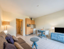 1-værelse-lejlighed 30 m2, i stueetagen, nord øst vendt. Pæn indrettet: indgang med 1 seng (80 cm, længde 190 cm). Stue/spisestue med 1 dobbelt sovesofa (140 cm, længde 190 cm), TV (fladskærms TV). Udgang til altan. Kogeniche (2 keramiske kogeplader, Brødrister, kedel, mikroovn). Bad/WC. El-opvarming. Altan 5 m2. Altanmøbler. Til benyttelse: strygejern. Internet (trådløs LAN [WLAN], ekstra). Parkeringsplads. Bemærk venligst: ikke-ryger hus. Brandalarm. 83065000345PW Der er et badekar. Det er en ikke-ryger ejendom, vær venlig at holde det. Du kan tage elevatoren til gulvet i lejligheden. Det har en baby seng. For at forberede noget hurtigt selv er en mikrobølgeovn klar.- Karakteristika for boligen