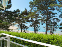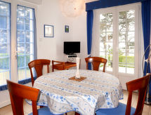 4-værelse-hus 100 m2 på 2 etager. Lys, renoveret i år 2011, pæn indrettet: stue/spisestue med pejs, spisebord, sat-TV, internationale TV-kanaler og radio. Udgang til terrasse. 1 værelse med 1 dobbeltseng (2 x 80 cm, længde 190 cm). Køkken (ovn, opvaskemaskine, 3 keramiske kogeplader, Brødrister, mikroovn, elektrisk kaffemaskine). Brus, særskilt toilet, dobbelt håndvask. El-opvarming. Overetage: 1 skrå værelse med 1 seng (140 cm, længde 190 cm). 1 skrå værelse med 2 senge (90 cm, længde 190 cm). Særskilt toilet. El-opvarming. Parketgulve. Opbevaringsrum. Udsigt over havet. Til benyttelse: vaskemaskine, strygejern hårtørrer. Bemærk venligst: ikke-ryger hus. Brandalarm. Ejendommen er helt indhegnet. Overrasket af en storslået udsigt over havet.- Faciliteter