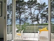 Smuk enfamiliehus "Calypso (SMH101)". 500 m fra bymidten af St. Michel-en-Grève, 6 km fra centrum af Plestin, 12 km fra bymidten af Lannion, rolig beliggenhed i en bydel, 300 m fra havet, i en blind vej. Til alene benyttelse: grund 870 m2 (indhegnet), græsplane. Terrasse, havemøbler, parkeringsplads (for 2 biler) på grunden. Indkøbsforretning, fødevarebutik 500 m, supermarked 6 km, restaurant, café, cykeludlejning 500 m, sandstrand 300 m. Tennis 1 km.Interior