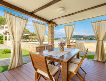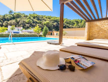 "Superior", 3-værelse-hus 50 m2. Pæn indrettet: stue/spisestue med 1 dobbelt sovesofa (160 cm, længde 190 cm), sat-TV (fladskærms TV), klimaanlæg. Udgang til terrasse. 2 værelse, alle værelser med 1 dobbeltseng (2 x 80 cm, længde 200 cm). Åbent køkken (ovn, opvaskemaskine, 4 keramiske kogeplader, mikroovn, fryser, elektrisk kaffemaskine). 2 brus/WC. Terrasse 20 m2, overdækket. Havemøbler. Til benyttelse: internet (trådløs LAN [WLAN], gratis). Kom ind og føl den forfriskende brise af klimaanlægget. En pool er tilgængelig. En opvarmet pool er tilgængelig.- Faciliteter