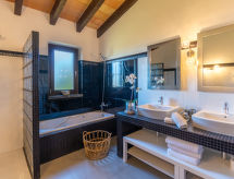 "Can Benet", 5-værelse-hus 300 m2, på forhøjet stueetage. Emner egnet for 8 voksne. Rummelig og lys, fuldstændig renoveret, meget komfortabelt og hyggeligt indrettet: åben stor stue/spisestue med skydedør, panoramavindue med åben kamin, spisebord, sat-TV, digital TV, fladskærms TV, radio og stereoanlæg. Udgang til havesideplads, til pool. 2 store dobbeltværelse med panoramavindue, alle værelser med 1 fransk seng (135 cm, længde 190 cm). 2 store dobbeltværelse med panoramavindue, alle værelser med 2 senge (90 cm, længde 190 cm). Store køkken (ovn, opvaskemaskine, 3 keramiske kogeplader, mikroovn, fryser, elektrisk kaffemaskine, kogeø). Brus/WC, bad/brus/WC, dobbelt håndvask. Stor havesiddeplads, lysthus. Havemøbler, grill, liggestole (8), loggia. Meget flotte udsigt over dalen, landskabet og byen. Til benyttelse: vaskemaskine, strygejern højstol, barneseng, hårtørrer. Internet (trådløs LAN [WLAN], gratis). Parkeringsplads (indhegnet). Velegnet for familier. ETV12090 Huset er også udstyret med en veranda. Det har en parkeringsplads. Huset er også udstyret med en privat pool. Huset er også udstyret med en internetforbindelse.- Faciliteter