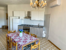 2-værelse-lejlighed 60 m2 i 2. etage. Lys, enkelt og hensigtsmæssig indrettet: stue/spisestue med 1 dobbelt sovesofa, 1 vægklapseng og TV. Udgang til terrasse. 1 dobbeltværelse. Kogeniche (ovn, 4 gasblus, mikroovn) med spisebord. Brus/bidet/WC. Klimaanlæg. Terrasse. Til benyttelse: barneseng. Bemærk venligst: velegnet for familier. Ikke-ryger lejlighed. 1 husdyr/hund tilladt. Residence.- Karakteristika for boligen