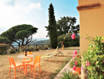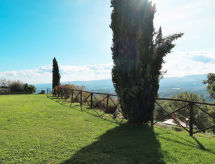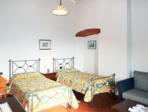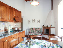 5-værelse-halvt dobbelthus 110 m2 på 2 etager, i stueetagen. Emner egnet for 6 voksne + 2 børn. Rustikt og smagfuld indrettet: stue/soveværelse med 1 dobbelt sovesofa, åben kamin og spisebord. Udgang til have. 1 værelse med 2 senge (90 cm). Lille, åbent køkken (ovn, 4 gasblus, mikroovn, elektrisk kaffemaskine). Brus/bidet/WC. Gas-opvarming. Overetage: 1 værelse med 1 dobbeltseng (180 cm). 1 værelse med 2 senge (90 cm). Køkken/alrum (ovn, mikroovn, elektrisk kaffemaskine) med spisebord, åben kamin. Brus/bidet/WC. Gas-opvarming. Terrasse, havesiddeplads. Havemøbler. Panoramaudsigt. Til benyttelse: barneseng. Internet (trådløs LAN [WLAN], gratis). Parkeringsplads (2 Biler) ved huset. Bemærk venligst: ikke-ryger lejlighed. Ingen intern forbindelsesdør mellem de adskilte boliger. Fælles pool er tilgængelig til udelukkende brug. Ingen obligatoriske ekstra gebyrer skal betales på stedet undtagen lokal skat. Dusj er forfriskende og et brusebad er til stede. En terrasse er tilgængelig. Der er en parkeringsplads til rådighed. Der er en privat pool.- Faciliteter