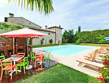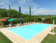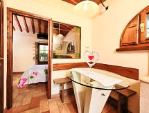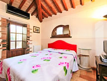 Meget gammelt bondegård "Casale Ischieto", renoveret, omgivet af marker. 800 m fra bymidten af Serre di Rapolano, 28 km fra centrum af Siena, 30 km fra bymidten af Montalcino, på en bakke, i det grønne. Til medbenyttelse: grund 50 ha, pool (16 x 9 m, 80 - 165 cm dyb, Sæsonbestemt tilgængelighed: 15.Maj. - 03.Okt.) med indentrappe. Udendørs brus, havemøbler. Til alene benyttelse: havemøbler. I huset: restaurant, bar, centralvarme, opvarme kun tilgængelig fra 01.11. til 15.04., cykler på stedet. Tilkørsel til til huset. Parkeringsplads på grunden. Indkøbsforretning 800 m, busstoppested 500 m, togstation "Rapolano Terme" 2 km, varmtvandsbad "Rapolano Terme" 2 km. Golfbane (9 hul) 21 km, tennis 2 km, ridehal 6 km. Nærliggende attraktioner: Castelnuovo Berardenga 18 km, Montepulciano 31 km, Pienza 37 km, San Quirico D'orcia 44 km. Bemærk venligst: velegnet for familier, passenede till ældre.Interior