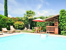 1-værelse-lejlighed 30 m2, i stueetagen. Hensigtsmæssig og med meget træ indrettet: 1 dobbeltværelse med sat-TV og klimaanlæg. Åbent køkken (4 kogeplader) med spisebord, klimaanlæg. Brus/bidet/WC. Gas-opvarming. Til benyttelse: hårtørrer. Internet (trådløs LAN [WLAN], gratis). Vil du ikke altid lave mad på ferie? Forkæl dig selv med et besøg på den vedlagte restaurant. Klimaanlægget sikrer en god stuetemperatur. Fordi den følsomme faktor spiller en vigtig rolle og er vigtig for os.- Faciliteter
