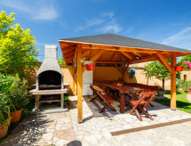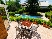 Balatonlelle: Hyggeligt 2-familiehus "Szabo". I byen, 1.8 km fra søen. Til medbenyttelse: have 500 m2 (indhegnet). Til alene benyttelse: pool kantet (2 x 4 m, 150 cm dyb, Sæsonbestemt tilgængelighed: 15.Maj. - 15.Okt.). I huset: trådløs LAN [WLAN], aircondition. Fødevarebutik 1.2 km, indkøbscenter 2 km, restaurant 1.5 km, sandstrand 1.8 km. Ejeren bor i et separat parcelhus.Interior