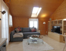 3-værelse-lejlighed 50 m2, på kvist etage. Delvis skråt, komfortabelt og hyggeligt indrettet: stue/spisestue med spisebord, kabel-TV og radio. 1 værelse med 1 dobbeltseng (1 x 180 cm, længde 200 cm). 1 værelse med 1 udtræksseng (2 pers. 2 x 90 cm, længde 180 cm). Åbent køkken (3 kogeplader, ovn, opvaskemaskine, Brødrister, kedel, elektrisk kaffemaskine, Kapsler til kaffemasin (Nespresso) ekstra, raclettegrill, fonduesæt (ost )). Brus/WC. Vandkoger. Til benyttelse: hårtørrer. Internet (trådløs LAN [WLAN], gratis). Bemærk venligst: ikke-ryger lejlighed.- Faciliteter