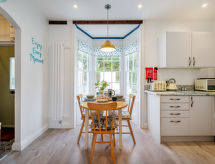 "Cherry Orchard Cottage", 3-værelse-feriehytte på 3 etager. Fuldstændig renoveret i år 2020, pæn og smagfuld indrettet: åben stue/spisestue med digital TV og elektrisk opvarming. Åbent køkken (ovn, opvaskemaskine, 4 keramiske kogeplader, Brødrister, kedel, mikroovn). Nederste etage: 1 dobbeltværelse med 1 seng (135 cm, længde 190 cm), bad/brus/WC. Udgang til have. Overetage: 1 dobbeltværelse med TV. Bad/brus/WC. Til benyttelse: internet (trådløs LAN [WLAN], gratis). Velegnet til grillning. Et trådløst LAN (trådløst lokalnetværk) er tilgængeligt.- Aktiviteter i nærheden