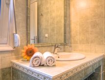 Smuk, komfortabelt villa "Chloe", på 2 etager, fritstående, bygget i 2008, renoveret i 2016, omgivet af marker. I bydelen Gerani, 9.6 km fra bymidten af Rethymno, rolig, solrige beliggenhed, 2.6 km fra havet, 2.6 km fra stranden. Til alene benyttelse: smuk, velplejet have med blomster og træer, liggeplæne, pool (34 m2, 100 - 150 cm dyb, 01.04.-31.10.). Grill. Skift af linned 2 gang ugentlig. Udskiftning af håndklæder 2 gang ugentlig. Rengøring af lejlighed 2 gang ugentlig. Parkeringsplads ved huset. Fødevarebutik 1.5 km, restaurant 1.5 km, bageri 1.5 km, café 1.5 km, sandstrand "Petres" 8.7 km kiselstenstrand "Kamari" 2.6 km. Ridehal 14.2 km. Nærliggende attraktioner: Monastery of Arkadi 31.1 km, Eleftherna Archaeological Museum 34.2 km, Melidoni Cave 41.4 km, Rethymno Old Town 9.6 km, Fortezza Venetian Castle 10.2 km, Biotopoi Nature Park 16 km. Bemærk venligst: bil anbefales. Babyudstyr på forespørgsel (inkl.). Unge grupper kun på forespørgsel.Interior