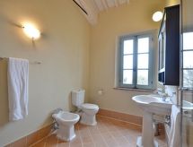 "Cipresso", 3-værelse-lejlighed 106 m2 i 1. etage. Rummelig og lys, meget komfortabelt og smagfuld indrettet: stor stue med åben kamin, sat-TV, internationale TV-kanaler, fladskærms TV og DVD. 1 stort dobbeltværelse med bad/bidet/WC. 1 stort dobbeltværelse. Store køkken/alrum (ovn, opvaskemaskine, Gaskomfur, 5 gasblus, Brødrister, kedel, mikroovn, elektrisk kaffemaskine) med spisebord. Brus/bidet/WC. Klimaanlæg, gulvvarme. Naturlige stengulve. Behagelig møblering i bondehusstil. Havesiddeplads overdækket. Havemøbler, liggestole. Meget flotte panoramaudsigt over landskabet. Til benyttelse: vaskemaskine, tørretumbler, strygejern myggenet højstol, barneseng til 2 år, hårtørrer. Internet (trådløs LAN [WLAN], gratis). Parkeringsplads (2 Biler). Bemærk venligst: velegnet for familier. Ikke-ryger lejlighed. 1 husdyr/hund tilladt. Privat indgang. Ingen obligatoriske ekstra gebyrer skal betales på stedet undtagen lokal skat. Sengelinned, håndklæder, slutrengøring og el er inkluderet. Residence. Kontakt os venligst, når du ankommer til receptionen. Eventuelt serveres morgenmad. Med indhegnet grund. Vores have venter på dig for en dukkert i afslapningen. Det har en veranda. Det har en parkeringsplads. Det har en børnepool. Ved rengøring. En dvd-afspiller er tilgængelig.- Karakteristika for boligen