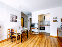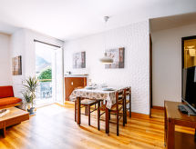 2-værelse-lejlighed 40 m2, i stueetagen. Hensigtsmæssig og komfortabelt indrettet: stue/spisestue med 2 sovesofaer, spisebord og TV (fladskærms TV). Udgang til terrasse. 1 dobbeltværelse. Lille køkken (4 kogeplader, ovn, Brødrister, kedel, mikroovn, elektrisk kaffemaskine, Kapsler til kaffemasin (Nespresso)). Brus/bidet/WC. Terrasse 12 m2. Havemøbler. Meget flotte udsigt over bjergene. For at forberede noget hurtigt selv er en mikrobølgeovn klar. Der er en komfur.- Karakteristika for boligen