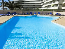 3-værelse-lejlighed 38 m2 i 4. etage. Stue/spisestue med TV (fladskærms TV), ventilator. Udgang til altan. 1 værelse med 1 fransk seng (1 x 140 cm, længde 190 cm). 1 værelse med 2 senge (90 cm, længde 190 cm). Køkken (miniovn, opvaskemaskine, 2 keramiske kogeplader, mikroovn, elektrisk kaffemaskine). Bad, særskilt toilet. Altan 8 m2. Altanmøbler. Udsigt over havet. Til benyttelse: internet (trådløs LAN [WLAN], ekstra). Parkeringsplads (overdækket). Bemærk venligst: ikke-ryger lejlighed. Brandalarm. Residence. Bad i huset. Forbruget af tobaksvarer er ikke tilladt. Ferieejendommen har en passager elevator. Der er en opvaskemaskine. En overdækket parkeringsplads er tilgængelig. En pool er tilgængelig.- Karakteristika for boligen